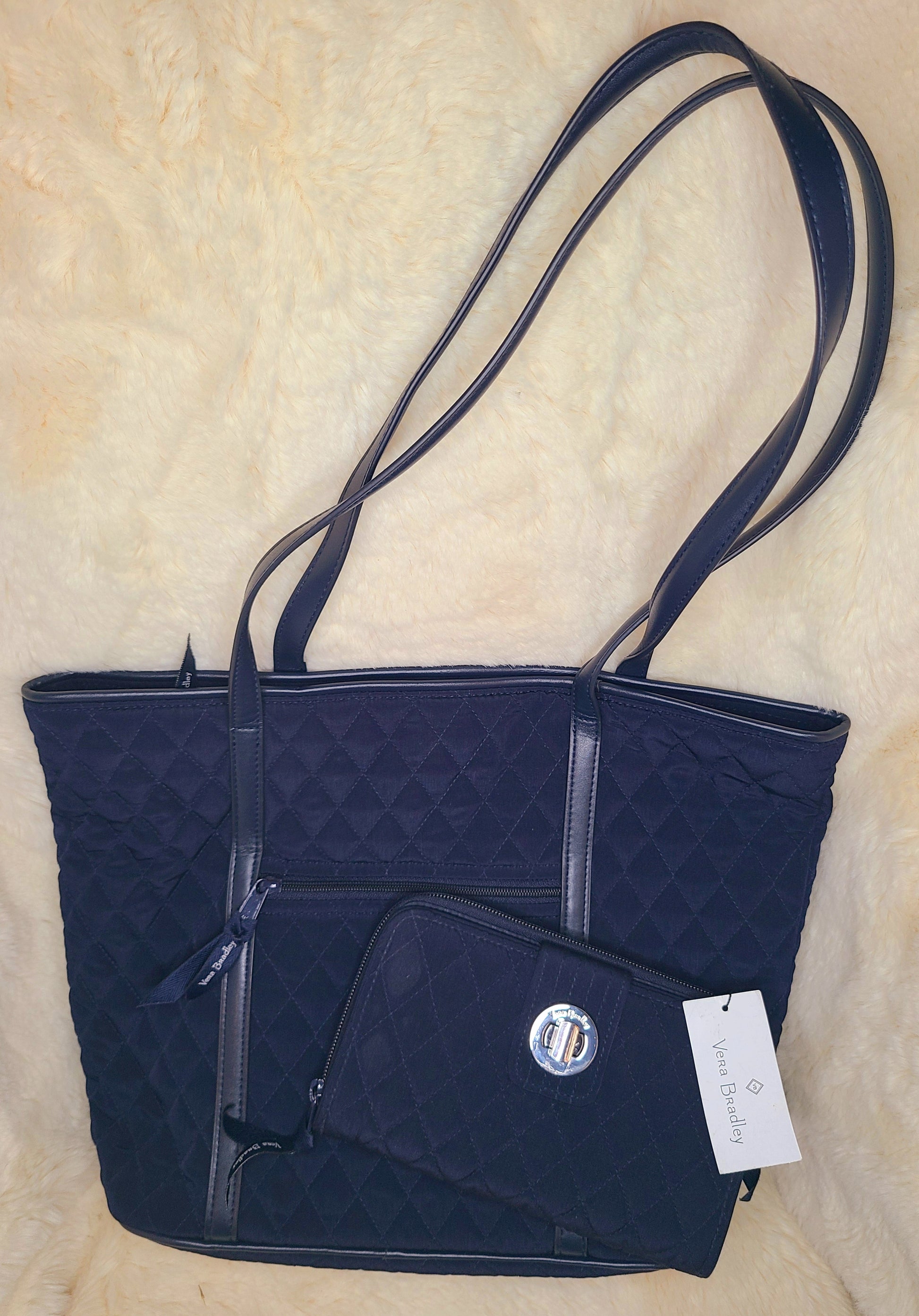 New Vera Bradley Navy Quilted Bag and Matching Wallet Set